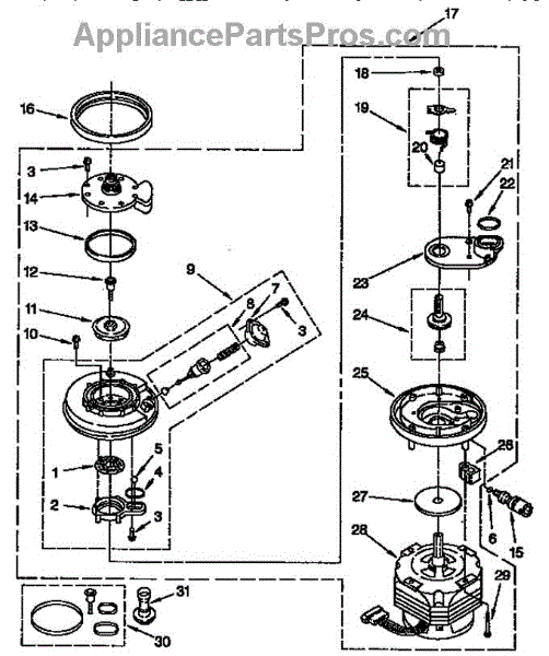 Symptoms of a failing Drain & Wash Impeller Kit include: