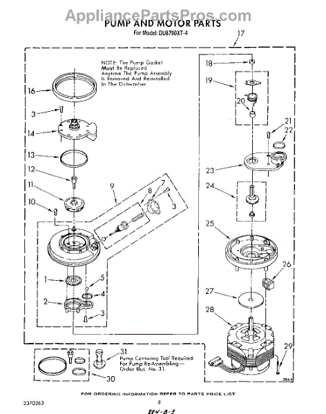 Parts for Whirlpool DU8700XT4: 06 - Pump And Motor Parts