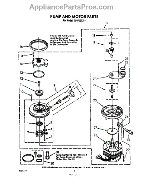 Parts for Whirlpool DU8700XX1: 05 - Pump And Motor Parts
