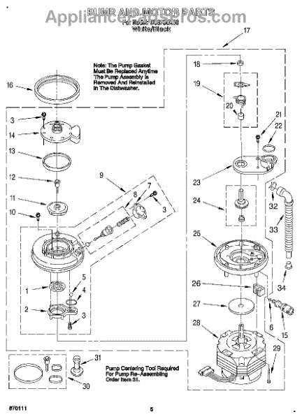 This pump outlet seal sits on the discharge side of the dishwasher pump to keep the outlet connection watertight. Replacing a worn seal helps stop leaks and keeps wash water contained during the cycle. What it does:
