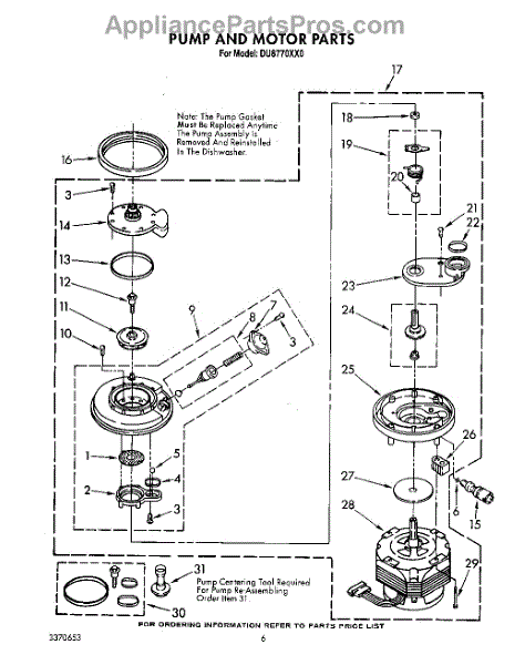 Parts for Whirlpool DU8770XX0: 05 - Pump And Motor Parts