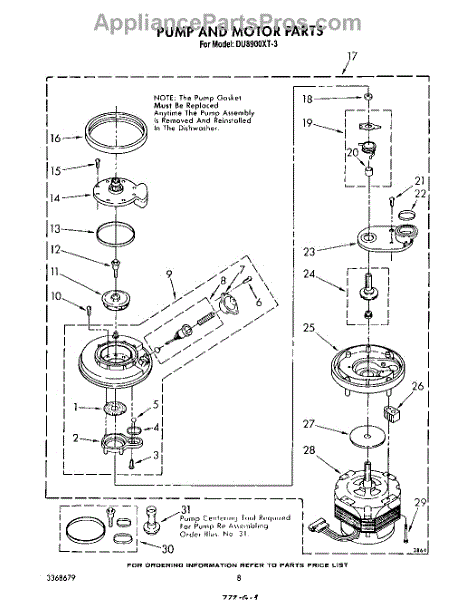 Parts for Whirlpool DU8900XT3: 06 - Pump And Motor Parts