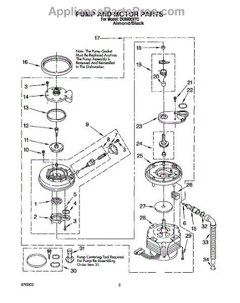 Parts for Whirlpool DU8900XY2: 04 - Pump And Motor Parts