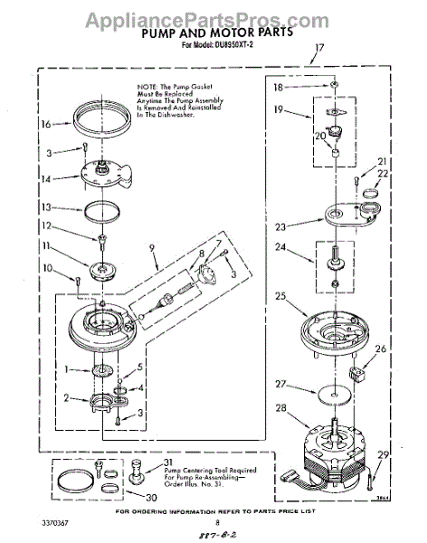 Parts for Whirlpool DU8950XT2: 06 - Pump And Motor Parts