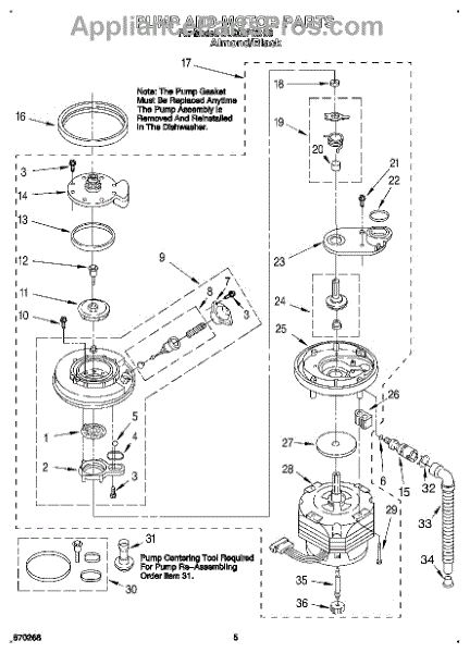 This pump outlet seal sits on the discharge side of the dishwasher pump to keep the outlet connection watertight. Replacing a worn seal helps stop leaks and keeps wash water contained during the cycle. What it does: