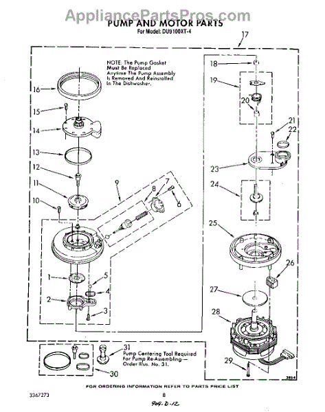 Parts for Whirlpool DU9100XT4: 06 - Pump And Motor Parts