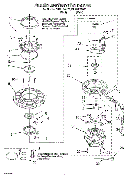 Parts for Whirlpool DU911PWKB0: 04 - Pump & Motor Parts