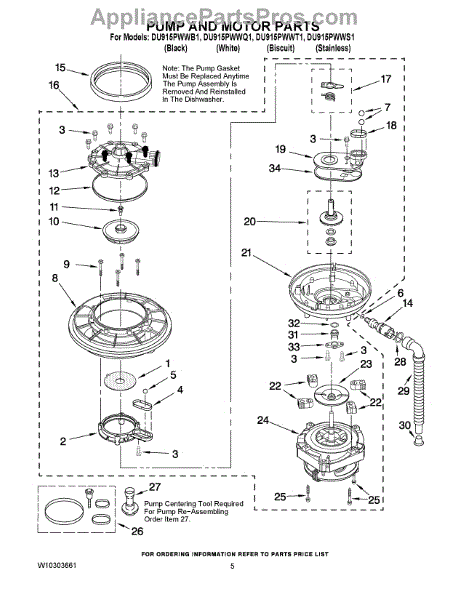 Parts for Whirlpool DU915PWWB1: 04 - Pump And Motor Parts