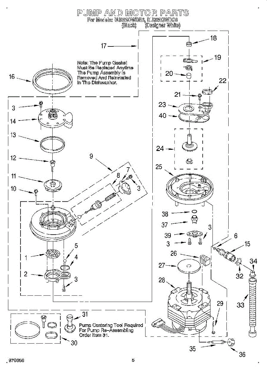Standing water in dishwasher bottom or leaking onto floor? This impeller and seal kit repairs worn bushings and seals. 15-minute DIY fix.