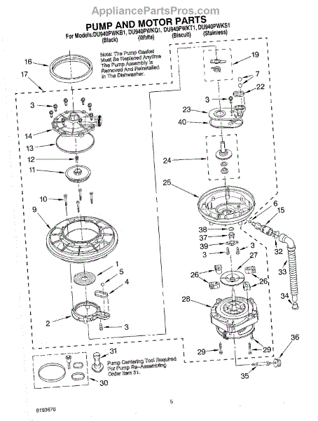 Parts for Whirlpool DU940PWKT1: 04 - Pump And Motor Parts