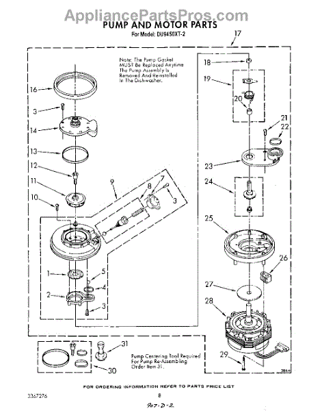 Parts for Whirlpool DU9450XT2: 06 - Pump And Motor Parts