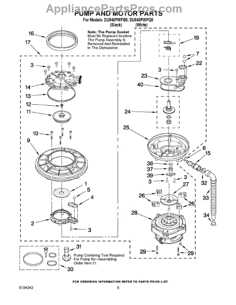 Parts for Whirlpool DU948PWPQ0: 04 - Pump And Motor Parts