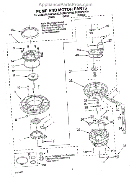 Parts for Whirlpool DU960PWKT0: 04 - Pump And Motor Parts