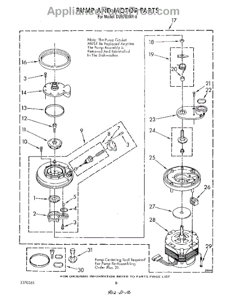 Symptoms of a failing Drain & Wash Impeller Kit include: