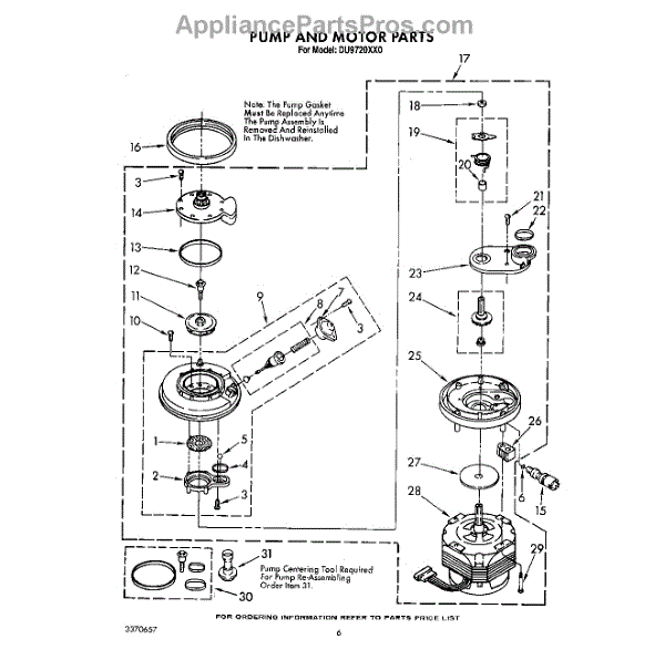 Parts for Whirlpool DU9720XX0: 05 - Pump And Motor Parts
