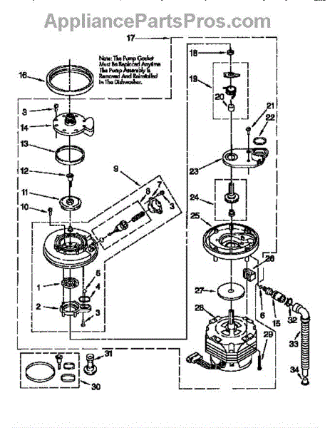 This pump outlet seal sits on the discharge side of the dishwasher pump to keep the outlet connection watertight. Replacing a worn seal helps stop leaks and keeps wash water contained during the cycle. What it does: