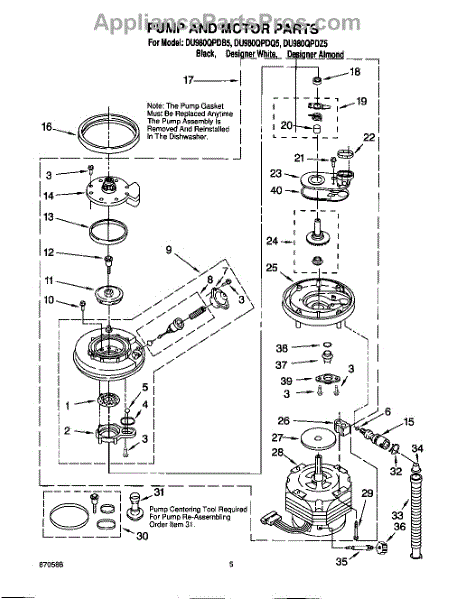 Parts for Whirlpool DU980QPDZ5: 04 - Pump And Motor Parts
