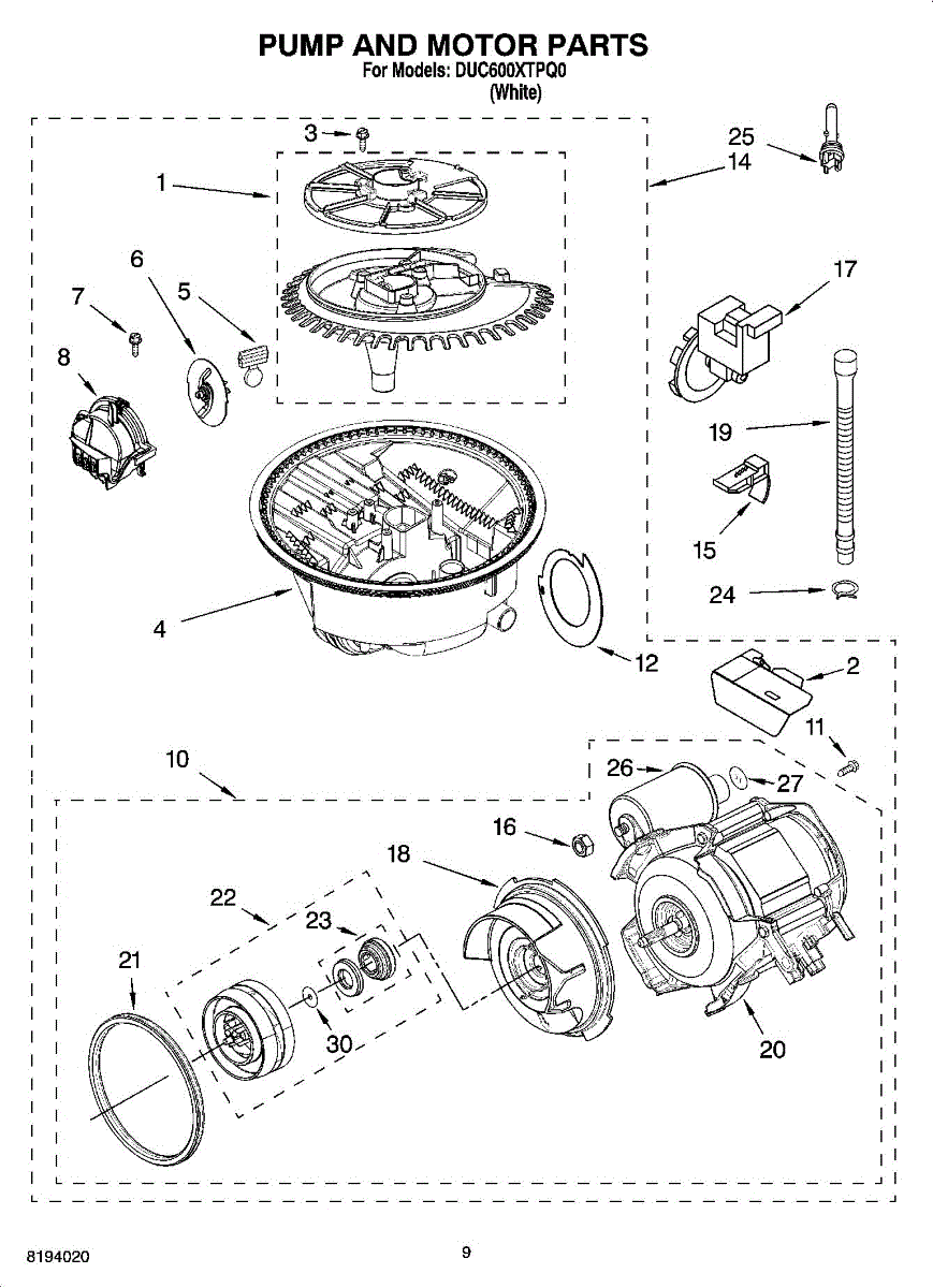 Parts for Whirlpool DUC600XTPQ0: 08 - Pump And Motor Parts