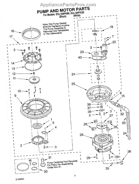 This pump and motor assembly circulates and drains dishwasher water to ensure proper washing and draining. It restores normal water movement so dishes get cleaned and the tub drains after a cycle. What it does: