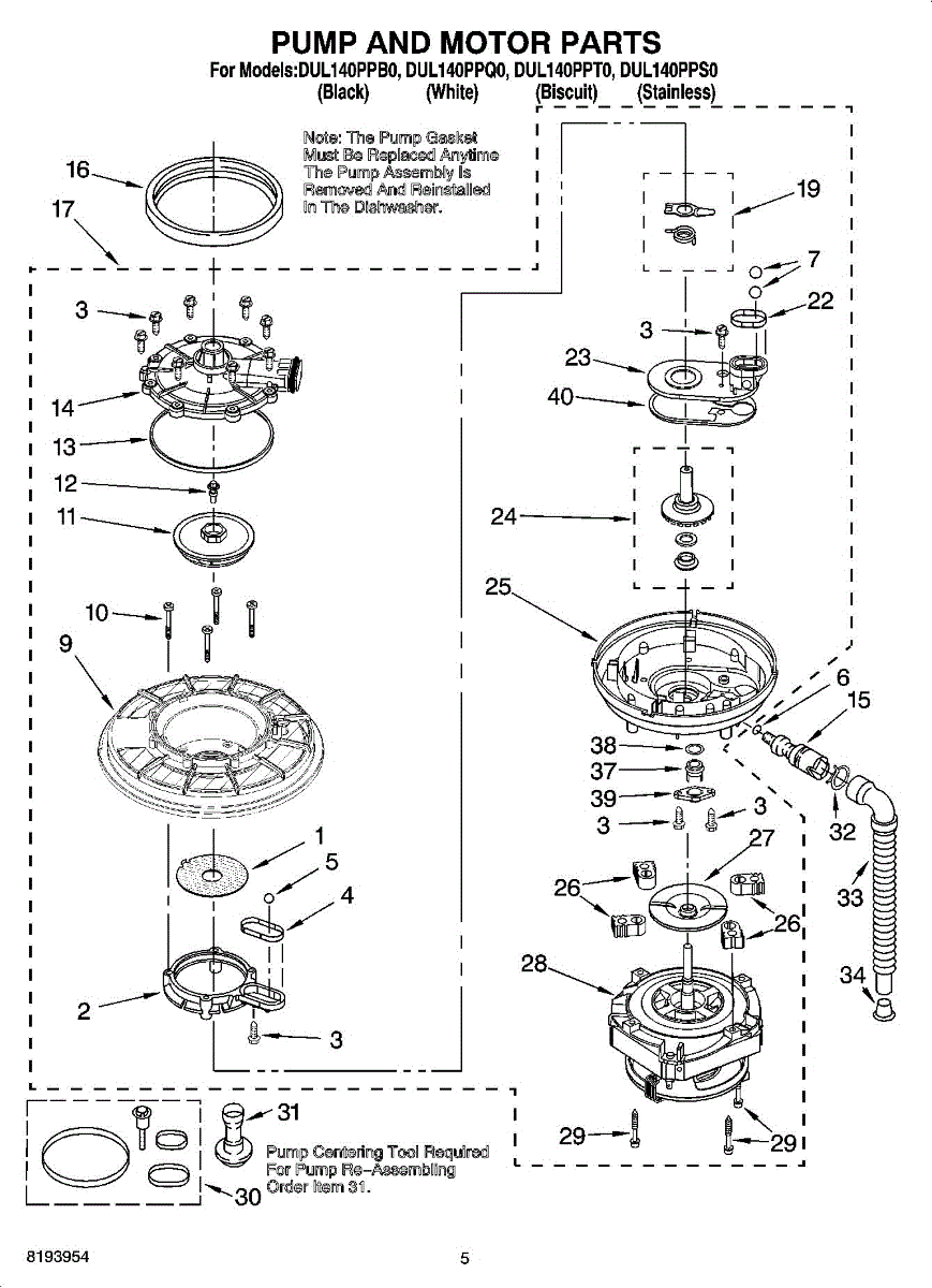 Standing water in dishwasher bottom or leaking onto floor? This impeller and seal kit repairs worn bushings and seals. 15-minute DIY fix.