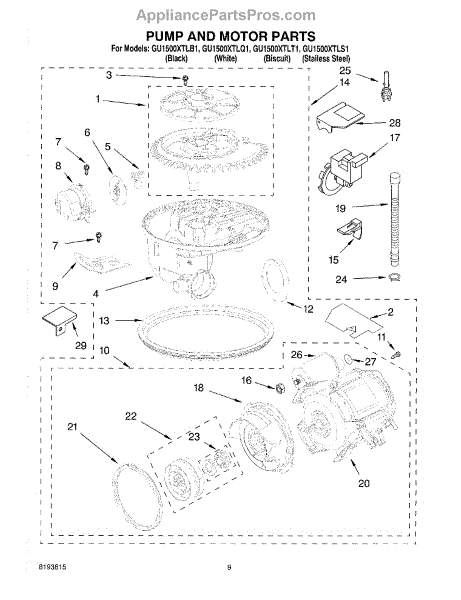 Parts for Whirlpool GU1500XTLQ1: 08 - Pump And Motor Parts