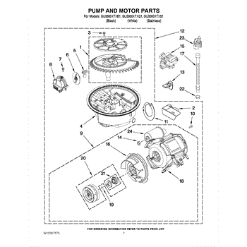 Fix standing water in your dishwasher tub with this drain pump motor assembly. Solves drainage failures and grinding noises. Moderate DIY repair.