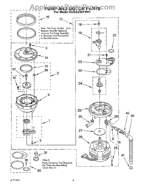 Parts for Kitchenaid KUDA230YWH1: 04 - Pump And Motor Parts