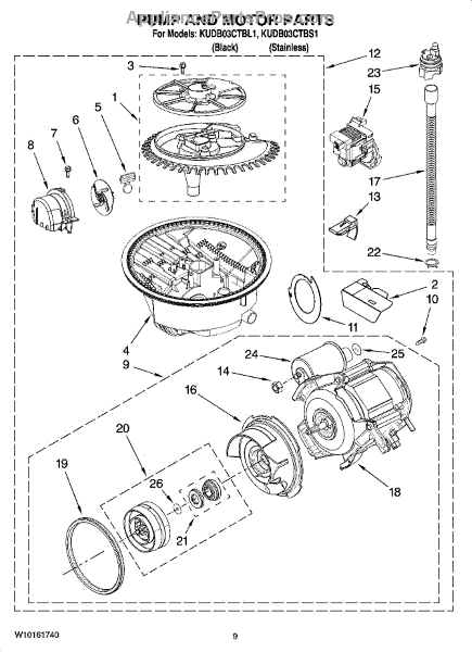 Parts for Kitchenaid KUDB03CTBL1: 08 - Pump And Motor Parts