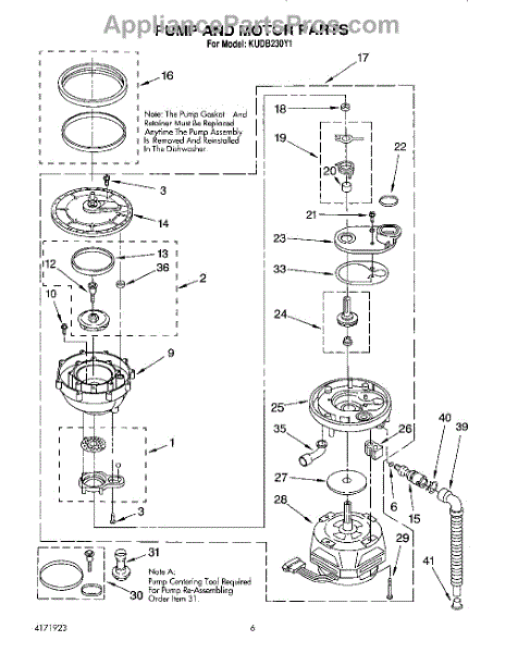 Parts for Kitchenaid KUDB230Y1: 04 - Pump And Motor Parts