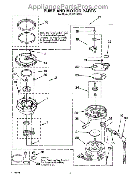 Parts for Kitchenaid KUDD230Y0: 05 - Pump And Motor Parts