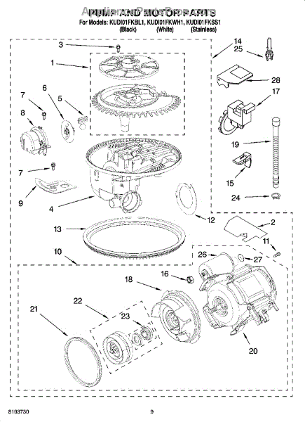 Parts for Kitchenaid KUDI01FKBL1: 08 - Pump And Motor Parts
