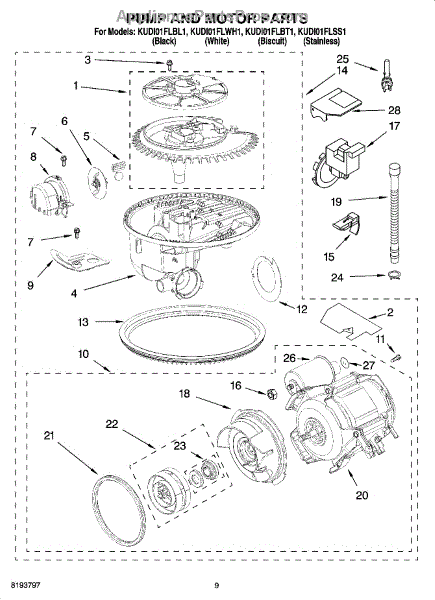 Parts for Kitchenaid KUDI01FLBT1: 08 - Pump And Motor Parts