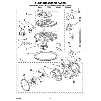 Parts for Kitchenaid KUDI01FLWH3: 08 - Pump And Motor Parts