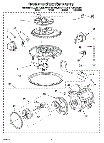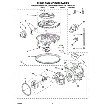 Parts for Kitchenaid KUDI01FLWH6: 08 - Pump And Motor Parts