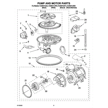 Parts for Kitchenaid KUDI01ILBT3: 08 - Pump And Motor Parts
