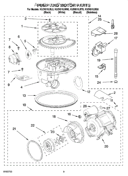 Parts for Kitchenaid KUDI01ILWH0: 08 - Pump And Motor Parts