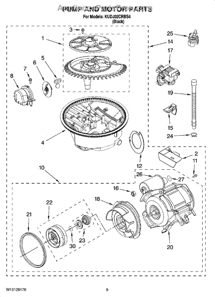 Parts for Kitchenaid KUDJ02CRBS4: 08 - Pump And Motor Parts