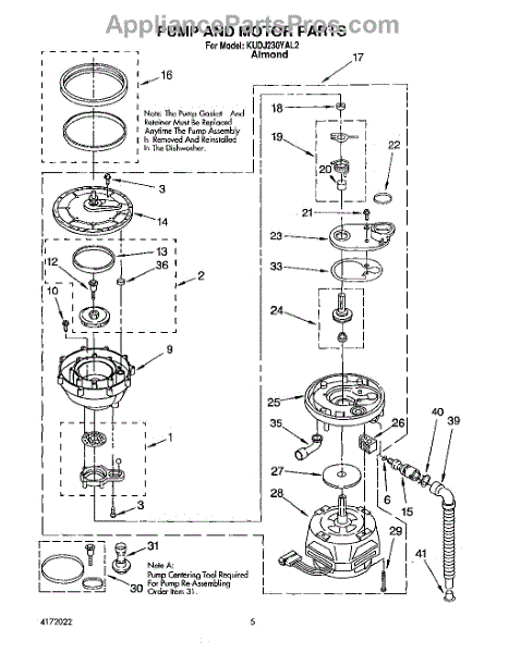 Parts for Kitchenaid KUDJ230YAL2: 04 - Pump And Motor Parts