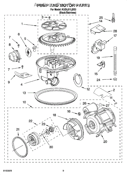 Parts for Kitchenaid KUDL01ILBS3: 08 - Pump And Motor Parts