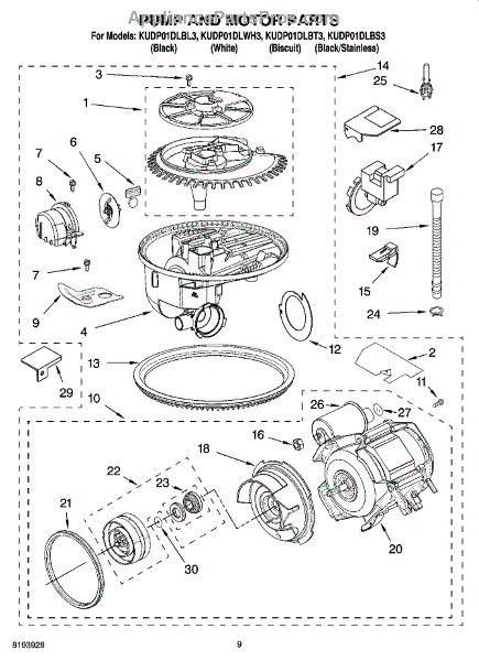 Parts for Kitchenaid KUDP01DLBL3: 08 - Pump And Motor Parts