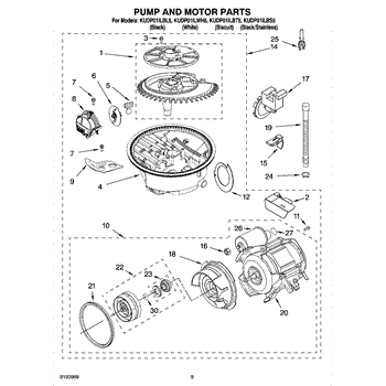 Parts for Kitchenaid KUDP01ILBL5: 08 - Pump And Motor Parts