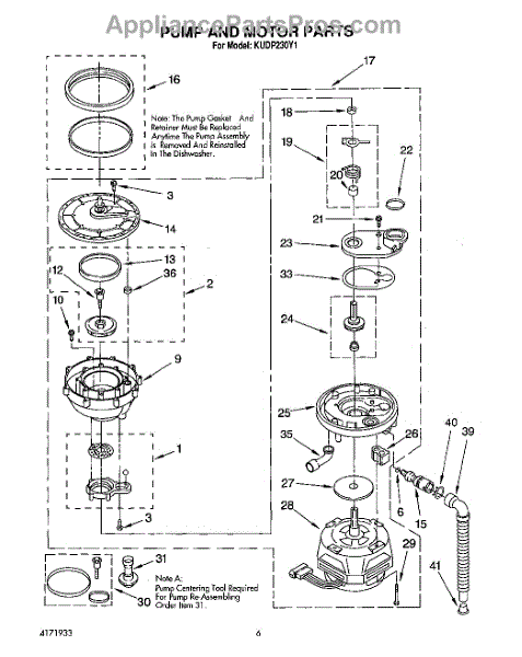 Parts for Kitchenaid KUDP230Y1: 04 - Pump And Motor Parts