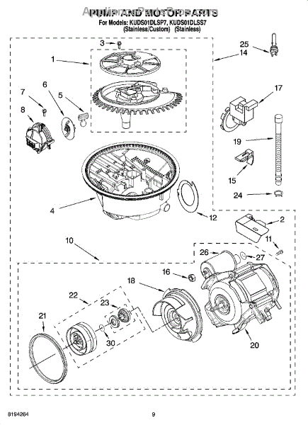 Parts for Kitchenaid KUDS01DLSS7: 08 - Pump And Motor Parts