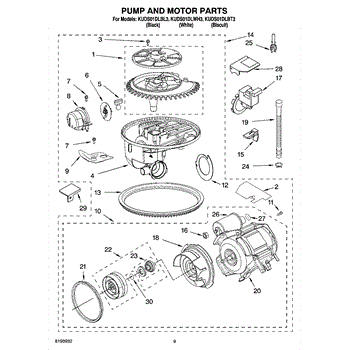 Parts for Kitchenaid KUDS01DLWH3: 08 - Pump And Motor Parts