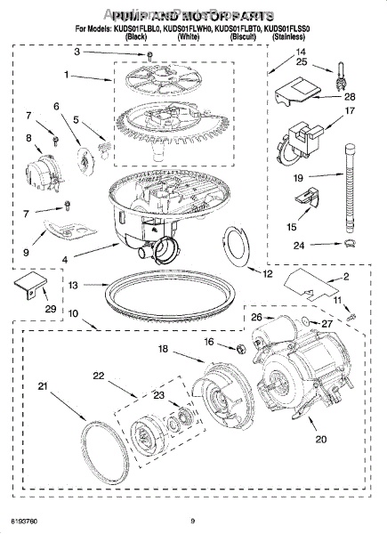 Parts for Kitchenaid KUDS01FLBT0: 08 - Pump And Motor Parts