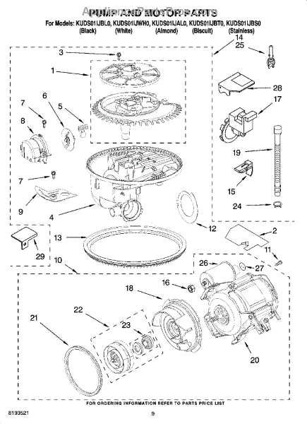 Parts for Kitchenaid KUDS01IJWH0: 08 - Pump And Motor Parts