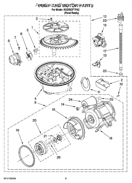 Parts for Kitchenaid KUDS03FTPA2: 08 - Pump And Motor Parts
