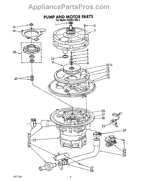 Parts for Kitchenaid KUDS21MS3: 05 - Pump And Motor Parts