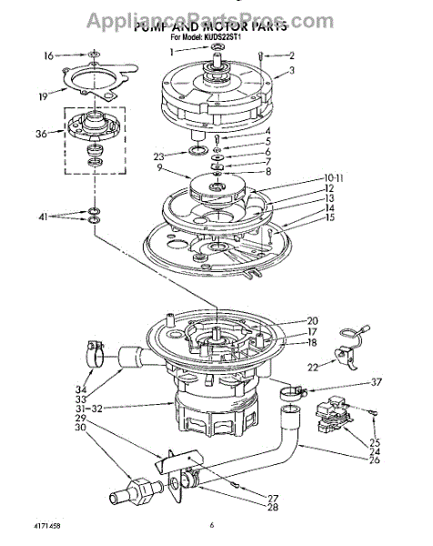 Parts for Kitchenaid KUDS22ST1: 05 - Pump And Motor Parts