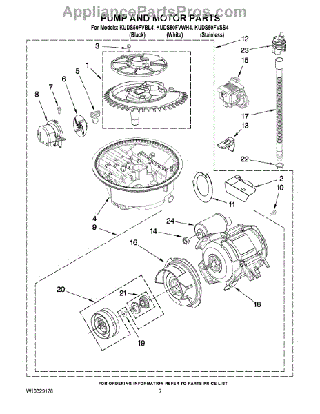 Parts for Kitchenaid KUDS50FVBL4: 06 - Pump And Motor Parts